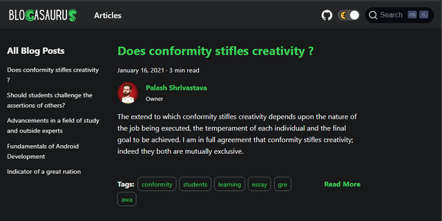 • A blog written using Docasaurus.