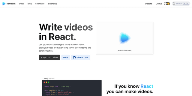 • Write videos programmatically in React